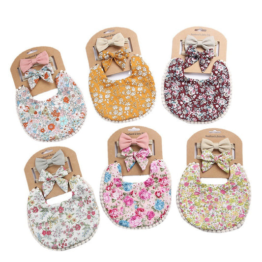 Newborn Baby Cute Floral Cotton Saliva Bib With Headband Set