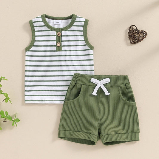 Summer Baby Boy Short Sleeve Overalls 2pc Sets
