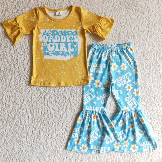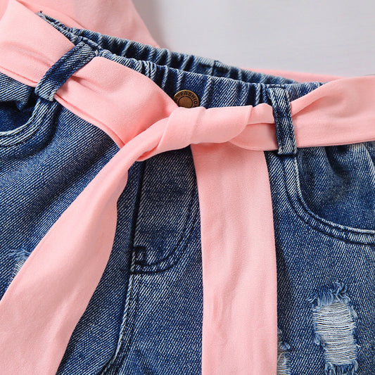 Girls' Short-sleeved Tassel Bell-bottom Pants 2pc Set