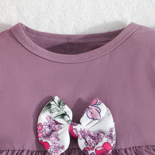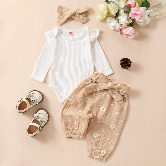 Baby Girls' Simple And Versatile Bow Three Piece Set