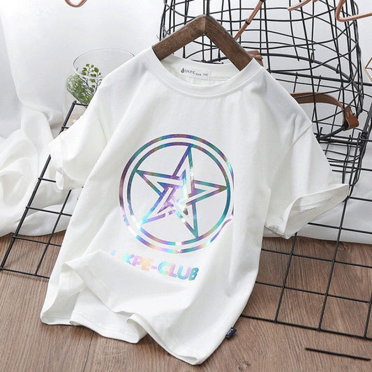 Boys'' Short Sleeve T-shirt Net Red Laser Reflective Cub Children''s Top Fashion
