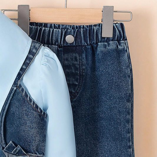 Girls' Lapel Shirt Denim Bell-bottom Pants Three-piece Suit