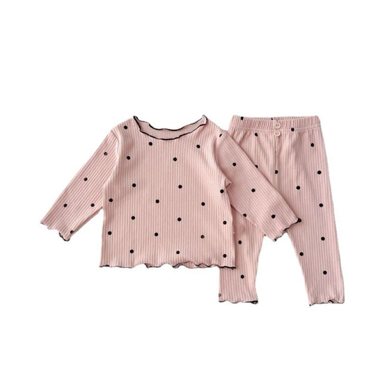 Girls' Long Sleeved Home Wear Pajamas With Wooden Ear Edge Set