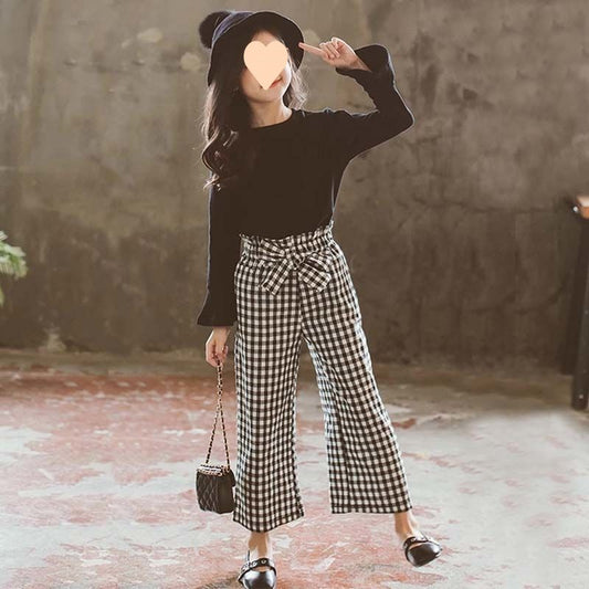 Girls' Wide-leg Suspender Pants Three-piece Suit