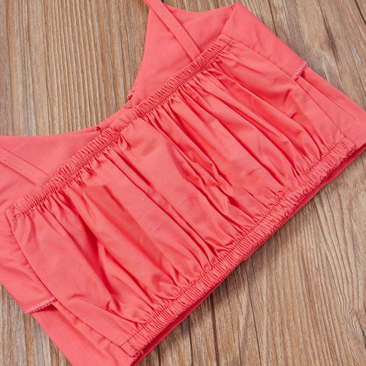 Baby/Toddler Double Wrinkled Cotton Top With Straps Flared Pants Set
