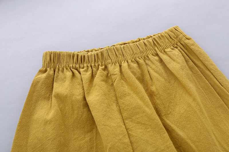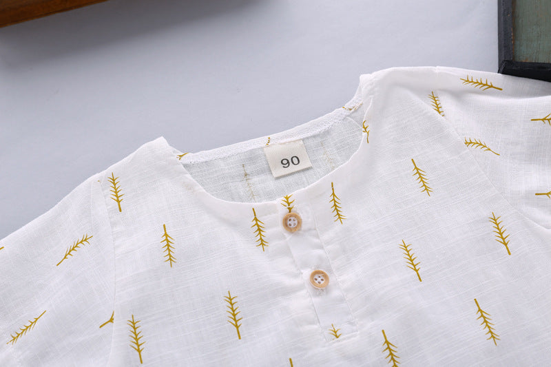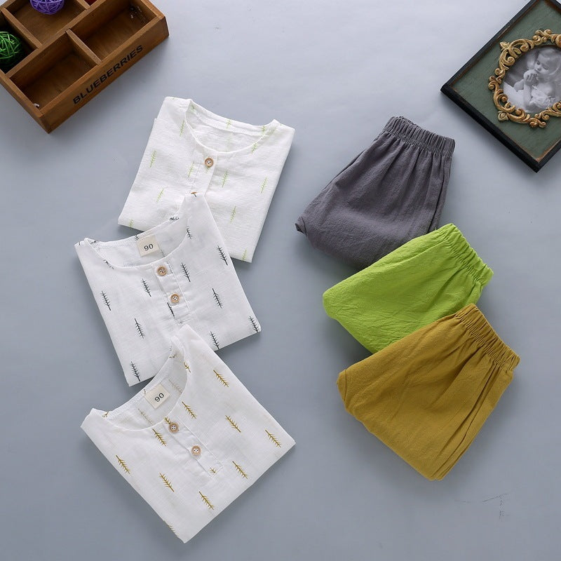 Boys' Casual Printed Cotton Linen Short Sleeved Pants Set