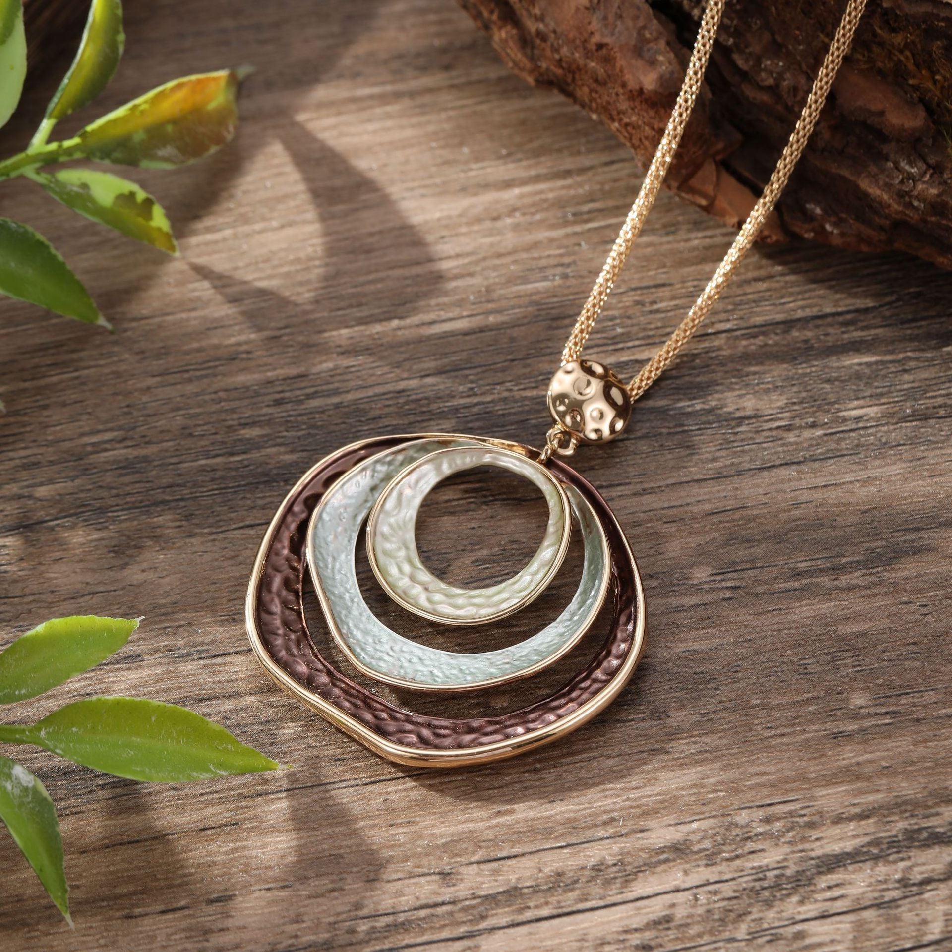 Color: peacock blue three-layer ring flower pendant-Silver, brown three-layer ring flower pendant-Gold