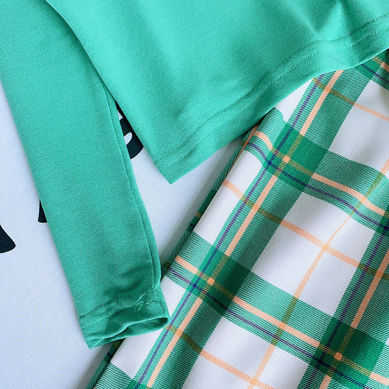 Fashion Girls Top Plaid Wide Leg Pants Set