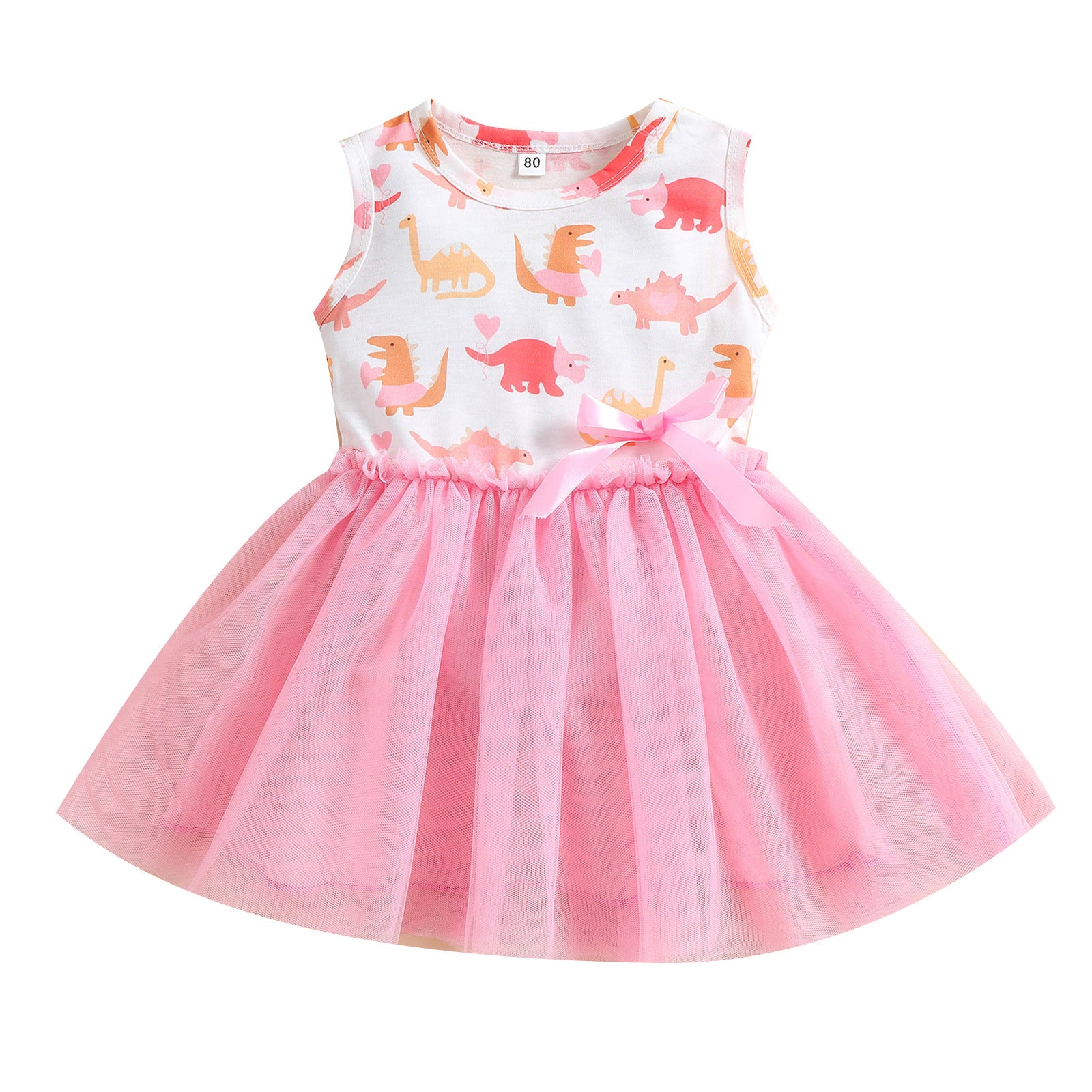 Girls Dress Dinosaur Printed Mesh Bow