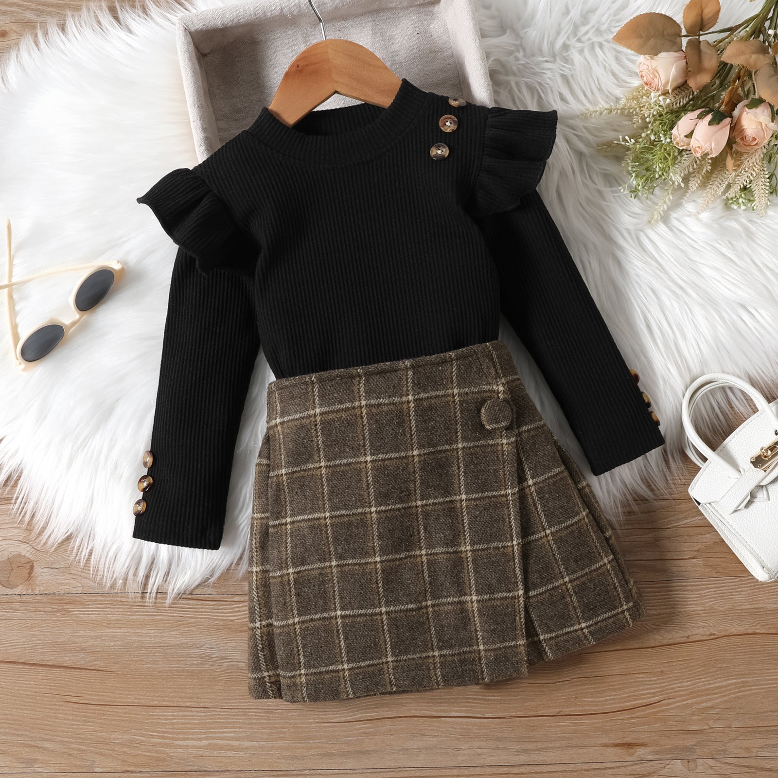 Dress your little fashionista in this charming two-piece outfit that combines comfort with style. This delightful set features a classic long-sleeved blouse paired with a trendy asymmetrical skirt that adds a modern twist to any wardrobe.