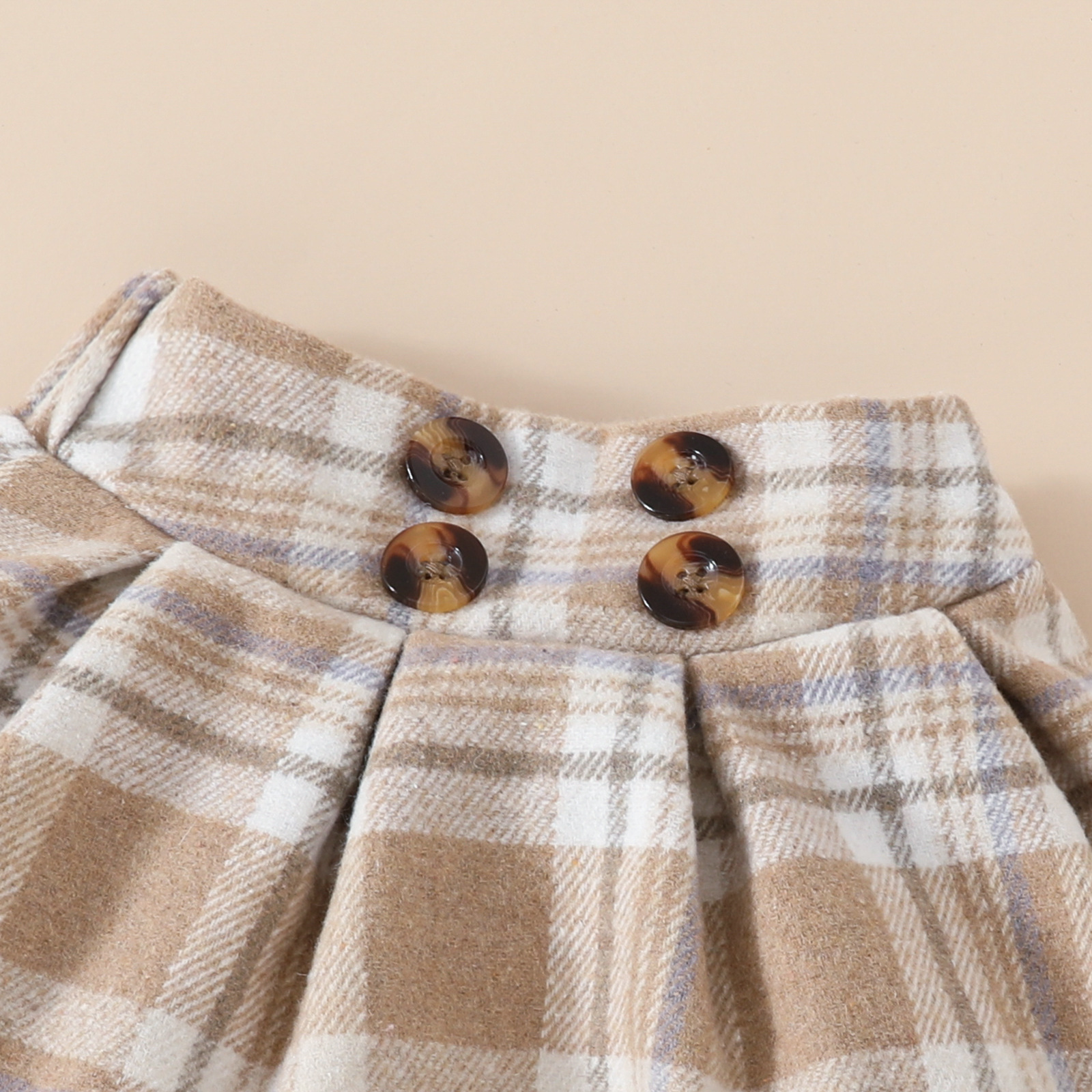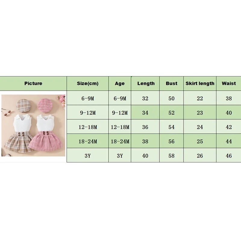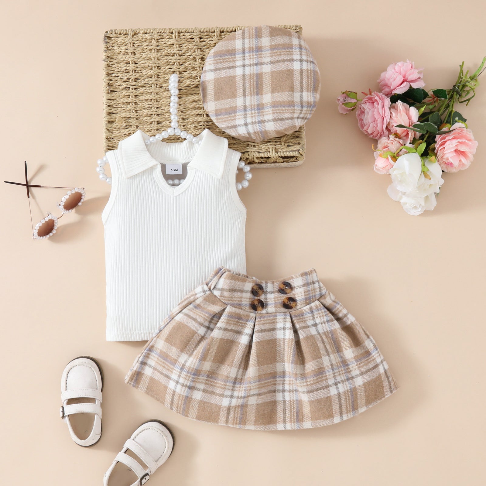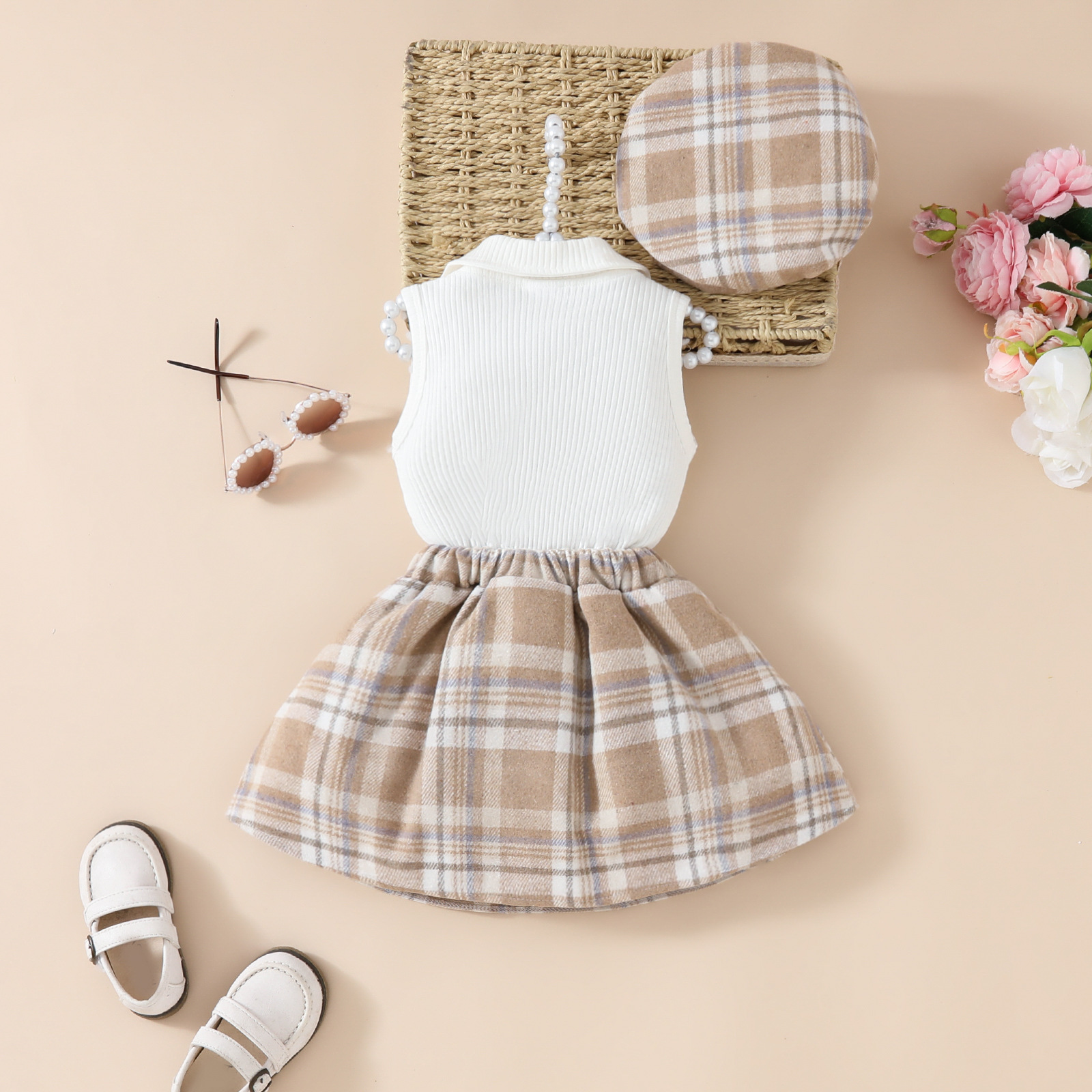 Girls' Fashion Beret Top Tartan Skirt 3pc Suit