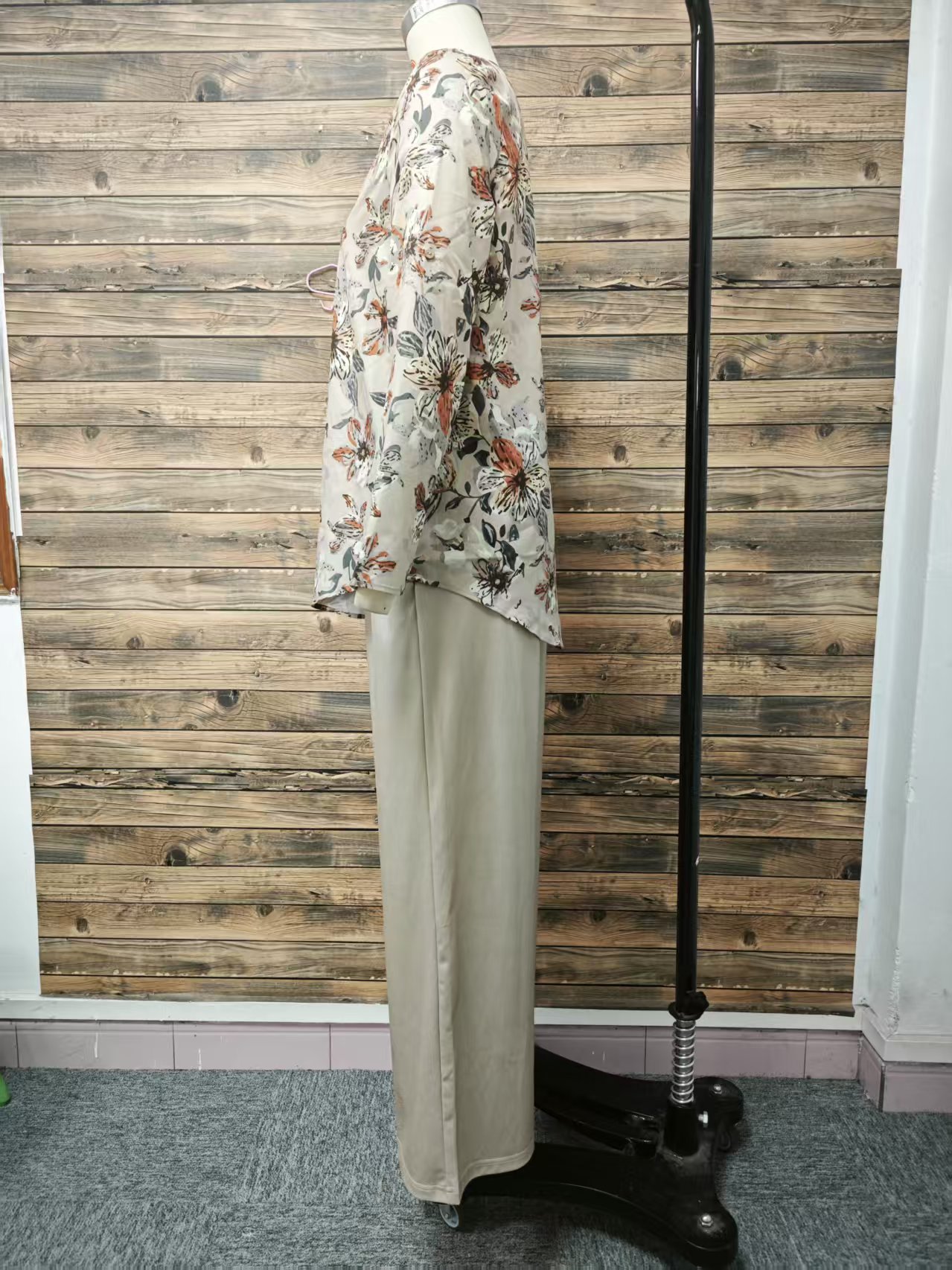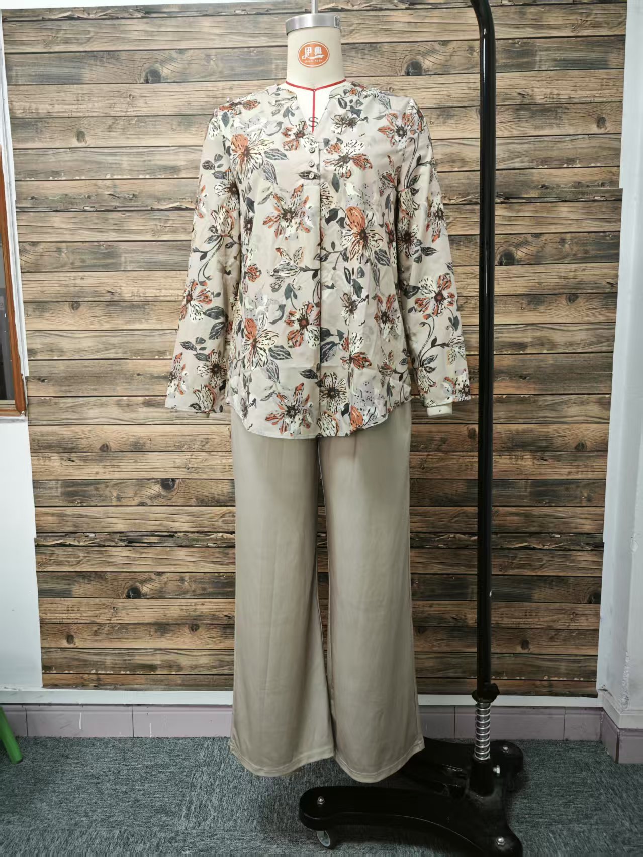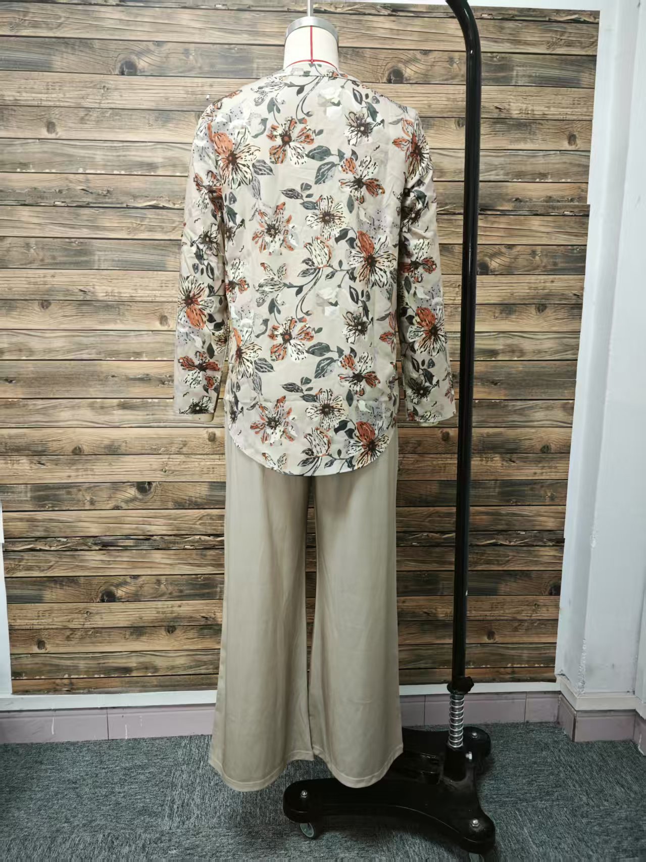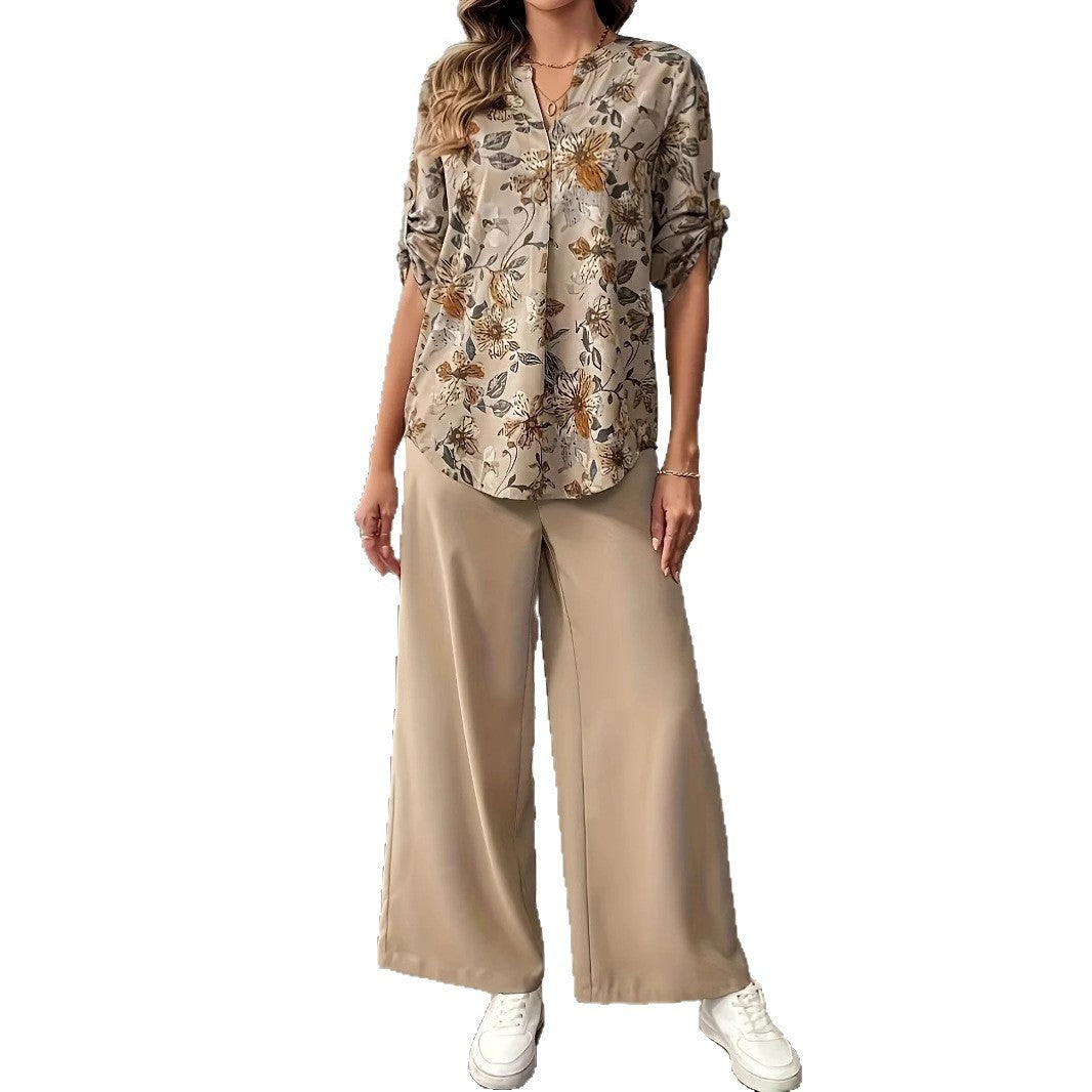 Khaki Printed Wide Leg Relaxed Casual Suit