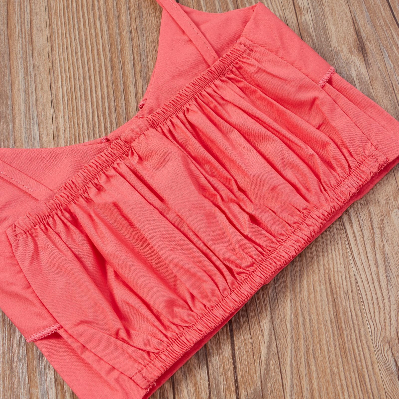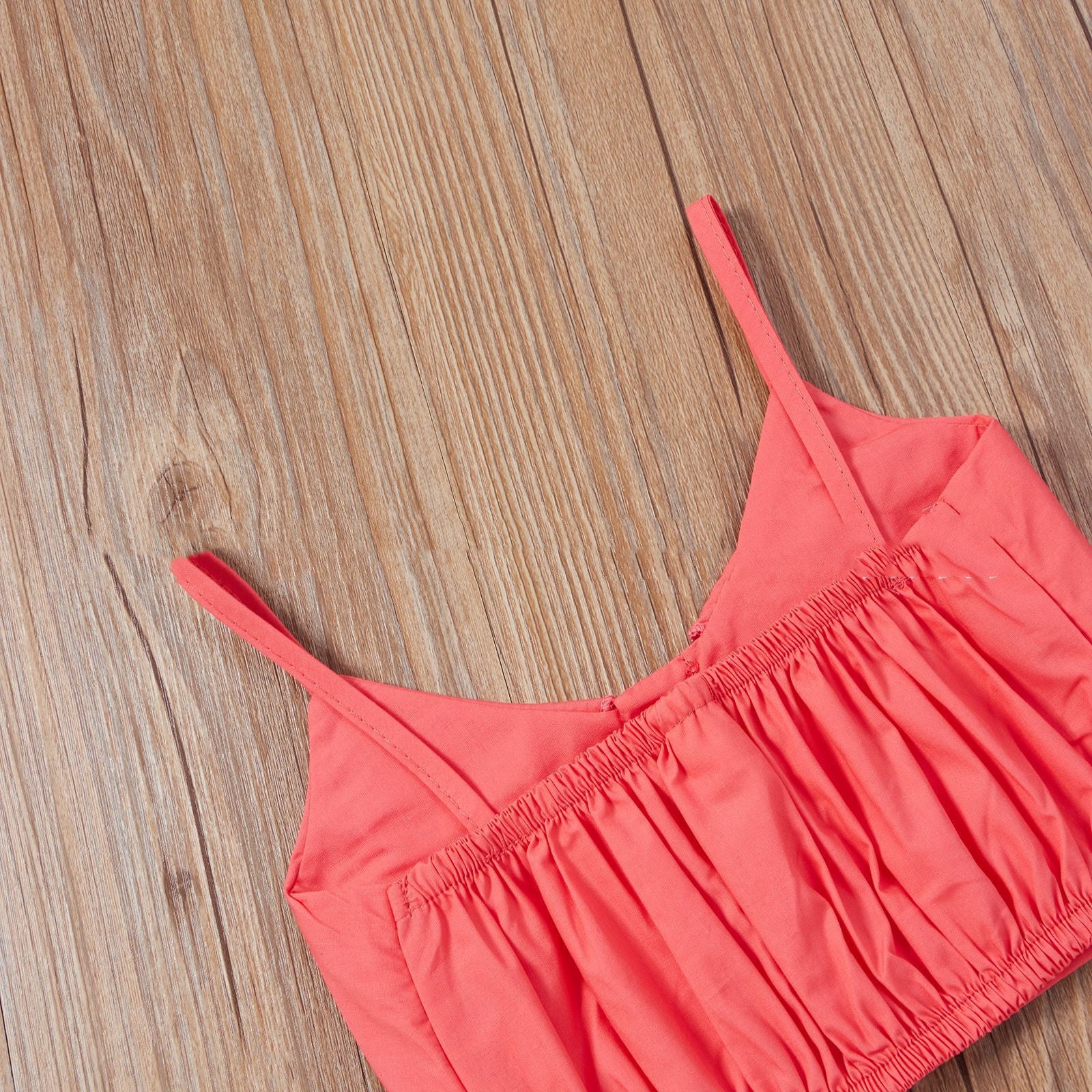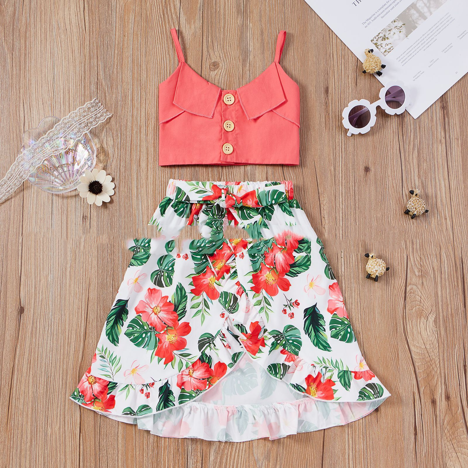Spring & Summer Little Girls' Sweet Rose Red Suspender Top & Floral Long Skirt