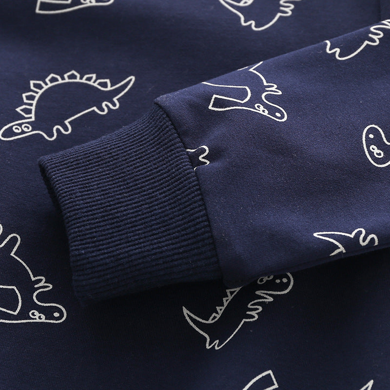 Color: Navy blue full-print dinosaur sweater, gray full-print dinosaur sweater