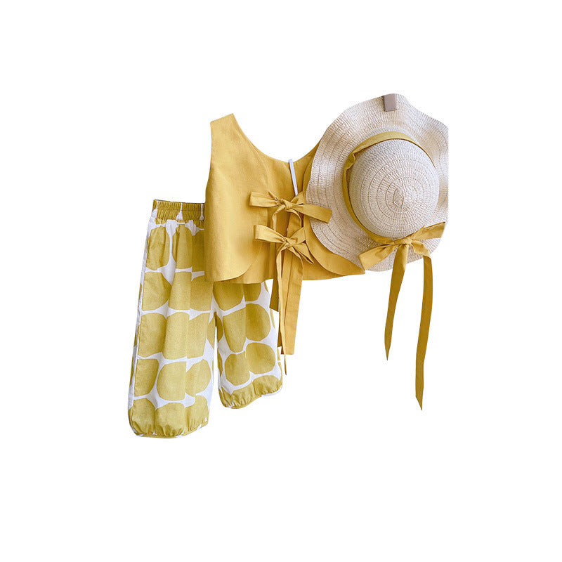Western Style Backless Thin Pullover Girls' Vest Top Polka Dot Bloomers Two-piece Set